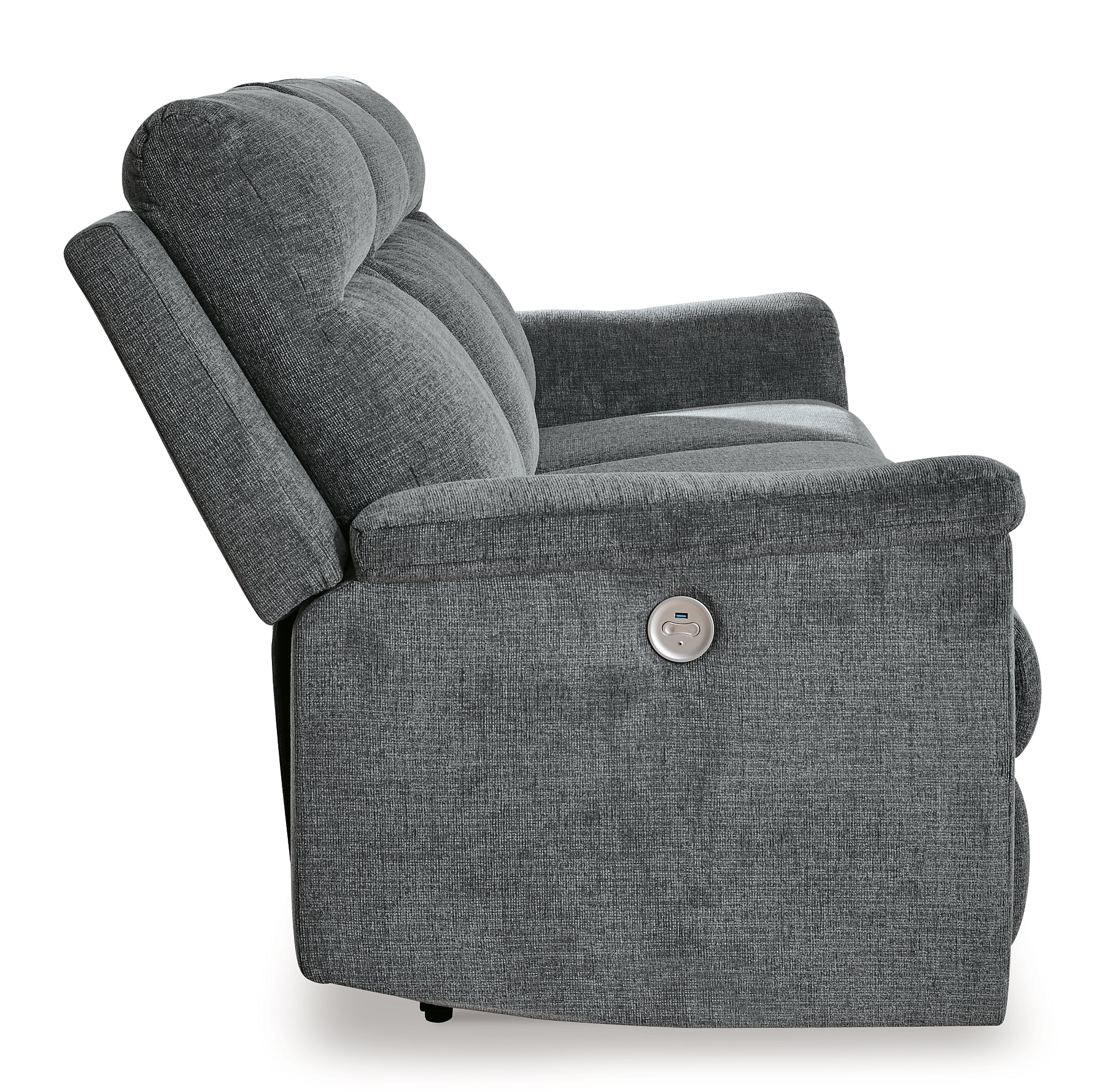 Details | Dual-sided recliner; middle seat remains stationary, One-touch power control with adjustable positions and zero-draw USB port, Zero-draw technology only consumes power when the USB receptacle is in use, Corner-blocked frame with metal reinforced seat, Attached cushions, High-quality foam cushions wrapped in poly fiber, Polyester micro chenille upholstery, Power cord included; UL Listed | |