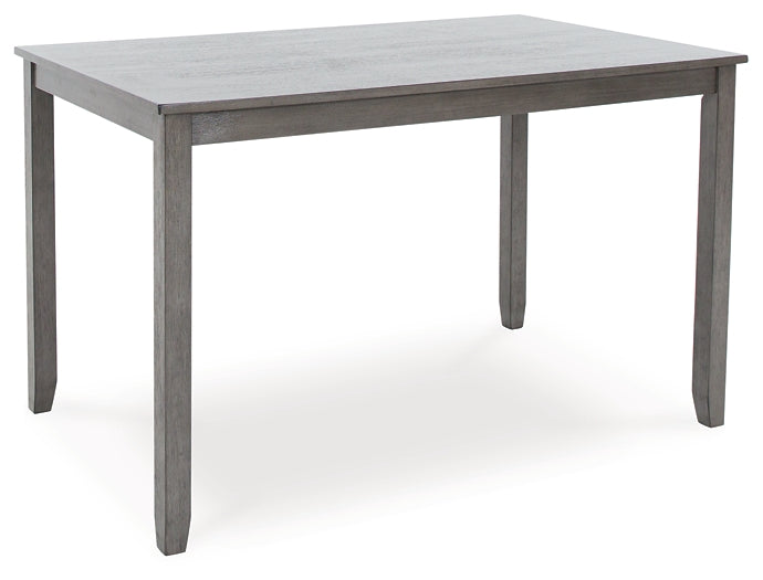 Details | Includes counter height dining table and 6 counter height bar stools, Table made with hardwood solids, acacia veneer and MDF substrate, Stools made with solid hardwood frames, Antiqued gray wash finish, Polyester upholstery, Foam cushioned seats, Nailhead accents, Assembly required | |