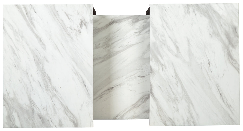 Details | Made of decorative laminate, engineered wood and metal, Set of 3, Faux Carrera marble top and shelf, Nesting design, Tubular metal frame with black powder coated finish, Assembly required | |