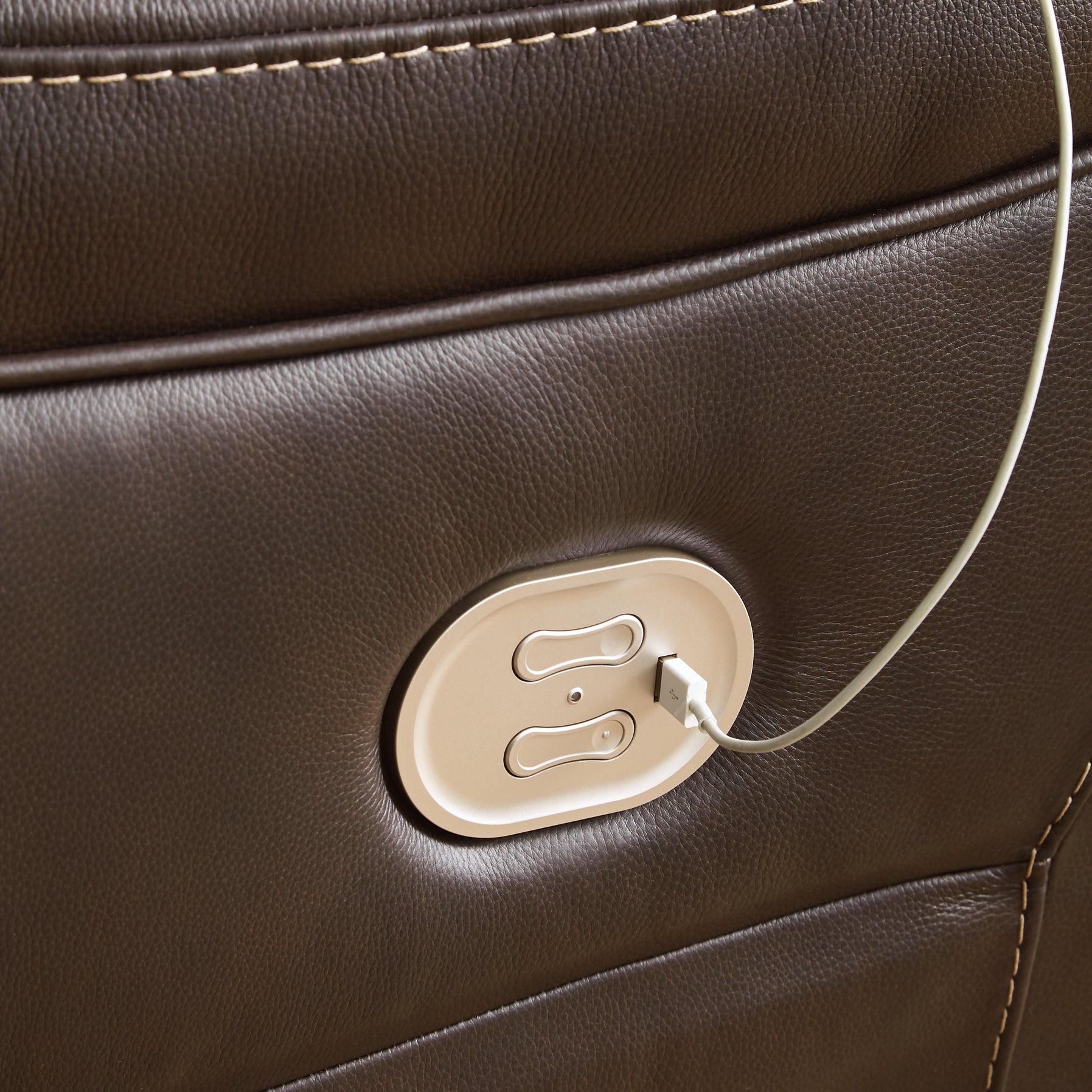 Details | Includes 3 pieces: left-arm facing power recliner, console with storage and right-arm facing power recliner, "Left-arm" and "right-arm" describe the position of the arm when you face the piece, One-touch power control with adjustable positions, Easy View™ adjustable headrest and zero-draw USB plug-in, Zero-draw technology only consumes power when the USB receptacle is in use, Zero-gravity mechanism allows optimum reclining comfort with infinite reclining positions at the touch of a button, Corner-blocked frame with metal reinforced seat; attached cushions; high-quality foam cushions wrapped in poly fiber, 100% top grain leather covers inside areas such as the back, seat and arm cushions; skillfully matched faux leather covers the remaining areas, Due to its natural origin, real leather can show individual characteristics such as healed scars, growth marks, grain variation and shade variation, Natural variations make each hide unique and do not detract from the wearing qualities of leather, Console with 2 cup holders and hidden storage, Extended ottoman for enhanced comfort, Zero wall design requires minimal space between wall and chair back, Power cord included; UL Listed | |