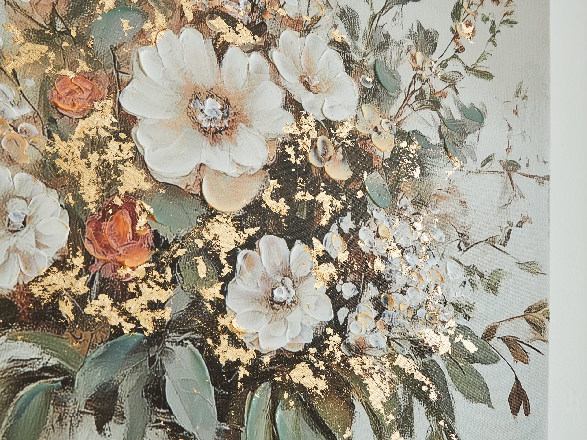Details | Set of 2, Gallery wrapped canvas, Hand painted and foiled embellishment, Sawtooth bracket for hanging, Vertical hanging only, Due to the hand crafted nature of this product, some variations may occur | |