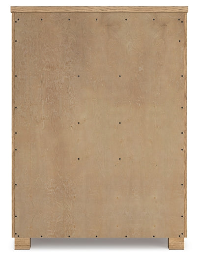 Details | Made with hardwood solids and thick rustic oak veneer, Glazed natural light oak color finish enhances the natural characteristics of the veneer, Thick metal bar pulls with a hammered textural surface in an aged bronze-tone finish, 5 drawers with fully finished interior, dovetail construction and ball-bearing side glides, Natural wood may display natural weathering, unique cracks, splits, knots, saw marks or other organic features unique to each piece | |