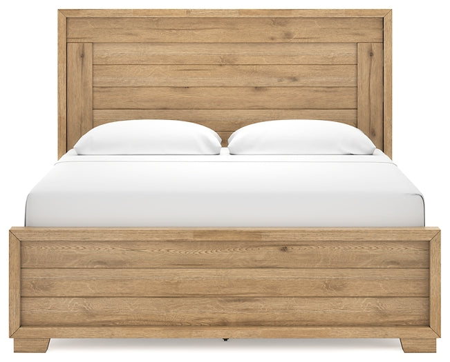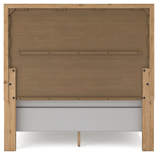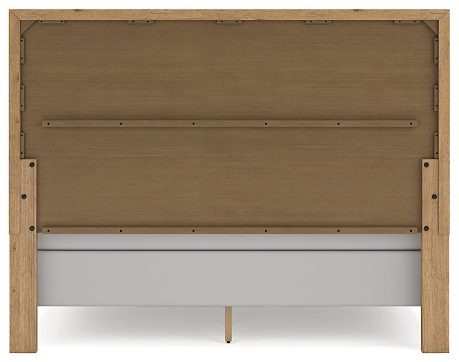 Details | Includes panel headboard and footboard with rails, Made with hardwood solids and thick rustic oak veneer, Glazed natural light oak color finish enhances the natural characteristics of the veneer, Thick metal bar pulls with a hammered textural surface in an aged bronze-tone finish, Foundation/box spring required, sold separately, Mattress available, sold separately, Natural wood may display natural weathering, unique cracks, splits, knots, saw marks or other organic features unique to each piece, Assembly required | |