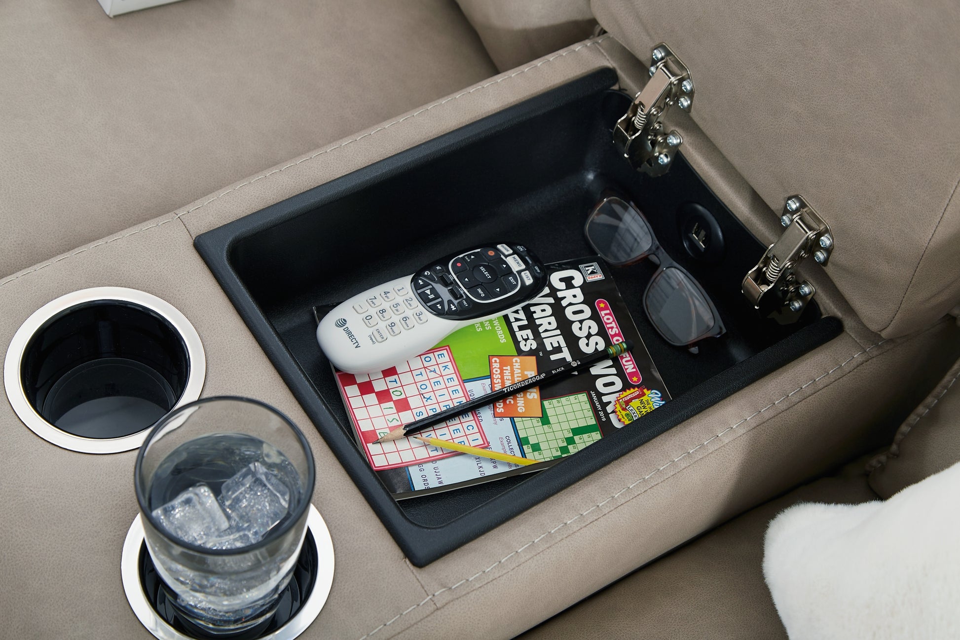 Details | Pull tab reclining motion, Corner-blocked frame with metal reinforced seat, Attached back and seat cushions, High-quality foam cushions wrapped in poly fiber, Faux leather upholstery, Center console with 2 cup holders, Armrests with cup holders | |