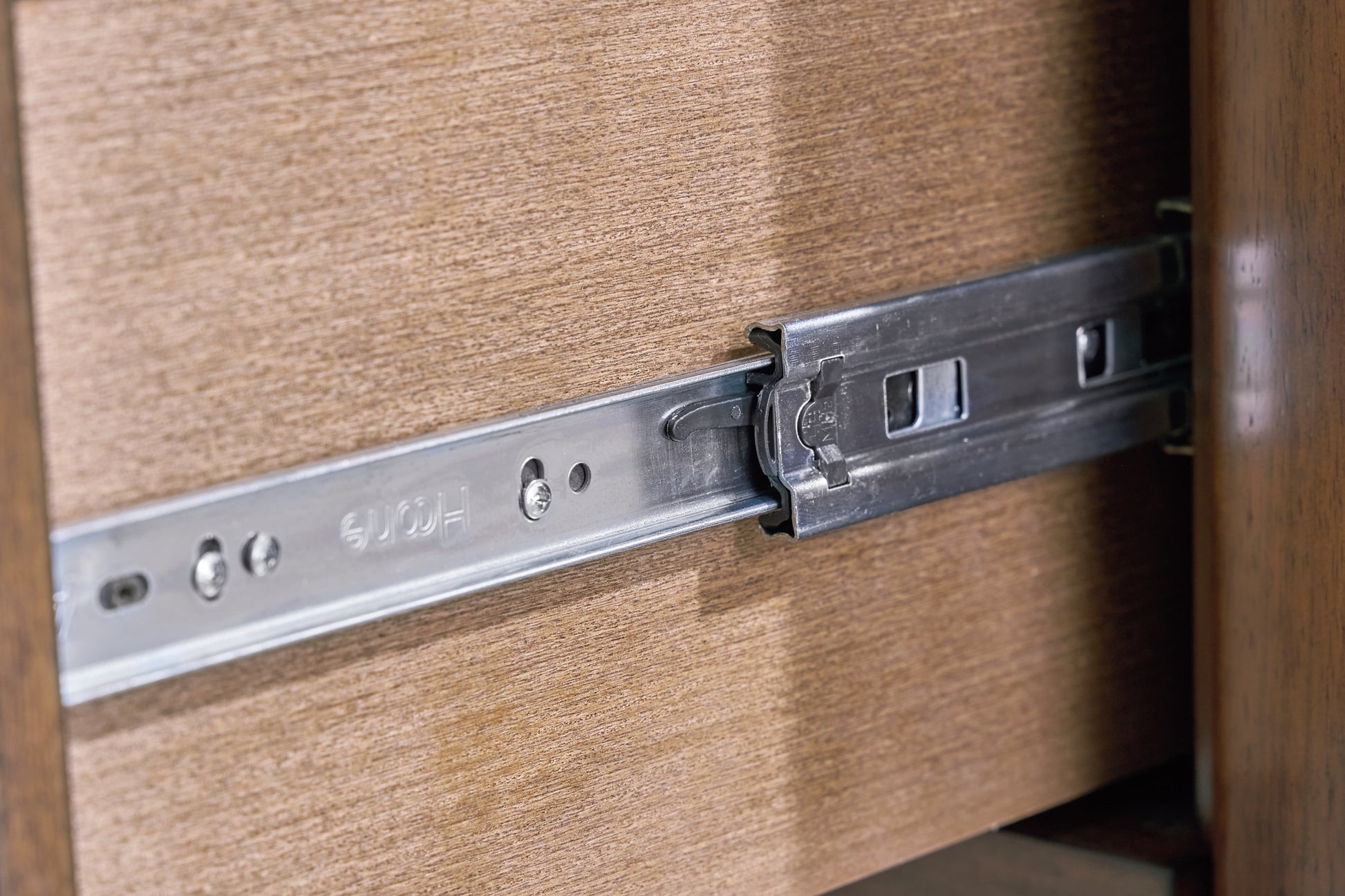 Details | Made with hardwood solids, mango wood veneer and MDF substrates, Medium brown wood-tone finish, 6 drawers with fully finished interior, dovetail construction and heavy duty ball-bearing side glides, Round tapered legs | |