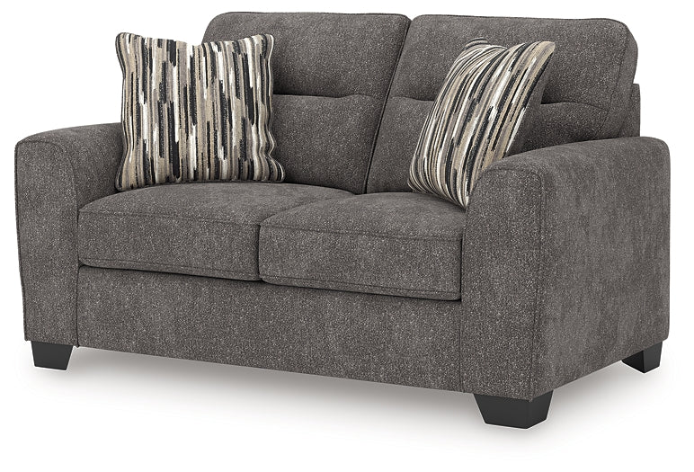 Details | Corner-blocked frame, Attached back and loose seat cushions, High-quality foam cushions wrapped in poly fiber, Accent pillows included, Pillows with soft polyfill, Polyester upholstery, Exposed feet with faux wood finish, Platform foundation system resists sagging 3x better than spring system after 20,000 testing cycles by providing more even support, Smooth platform foundation maintains tight, wrinkle-free look without dips or sags that can occur over time with sinuous spring foundations | |