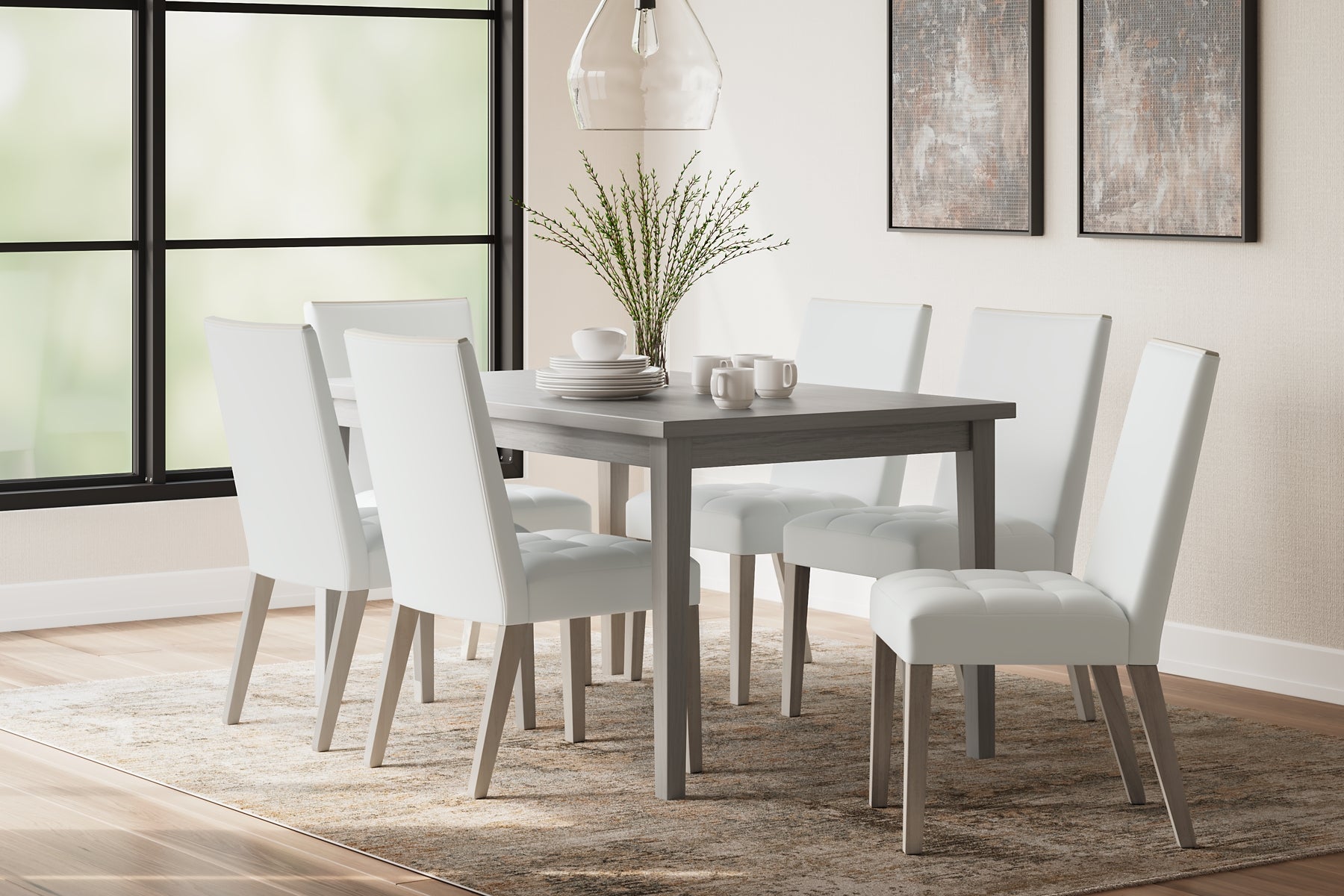 Details | Made of engineered wood, Tabletop made of melamine with a replicated barn wood effect, MEGA-TUFF® melamine surfaces are made of easy-clean melamine which is heat-, scratch-, water- and stain-resistant, Dining table with tapered legs and a gray finish, Seats up to 6, Assembly required | |