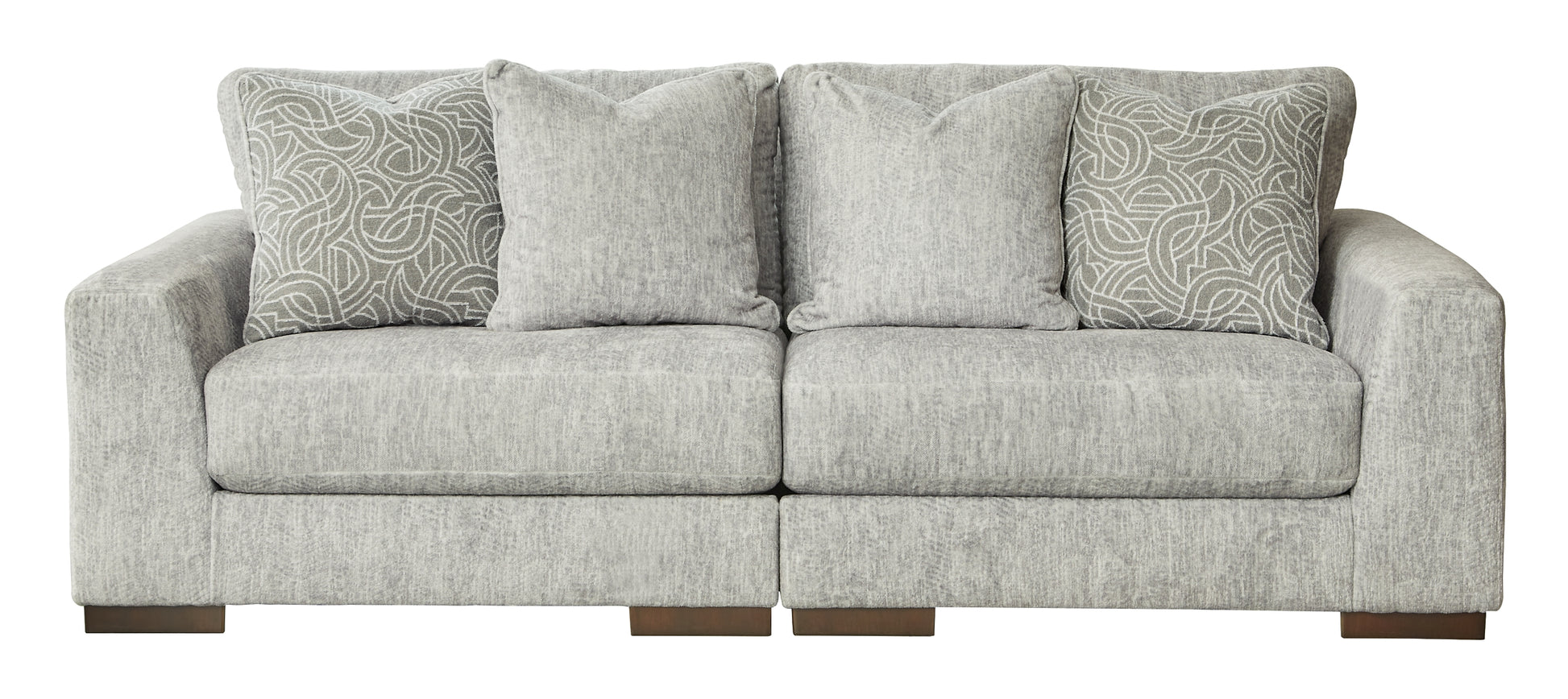 Details | Includes 2 pieces: left-arm facing corner chair and right-arm facing corner chair, "Left-arm" and "right-arm" describe the position of the arm when you face the piece, Corner-blocked frame, Reversible cushions, High-resiliency foam cushions wrapped in poly fiber, Accent pillows included, Pillows with feather-fiber fill, Exposed feet with faux wood finish, Platform foundation system resists sagging 3x better than spring system after 20,000 testing cycles by providing more even support, Smooth platform foundation maintains tight, wrinkle-free look without dips or sags that can occur over time with sinuous spring foundations | |