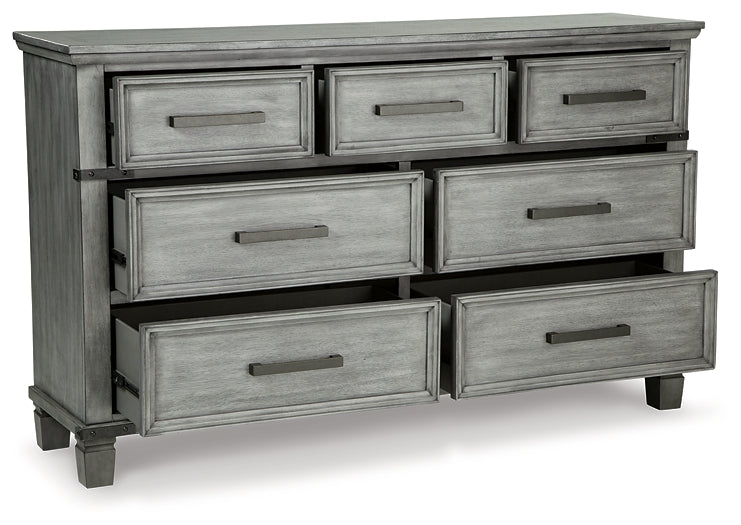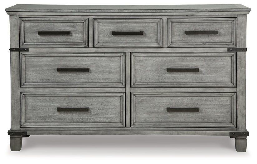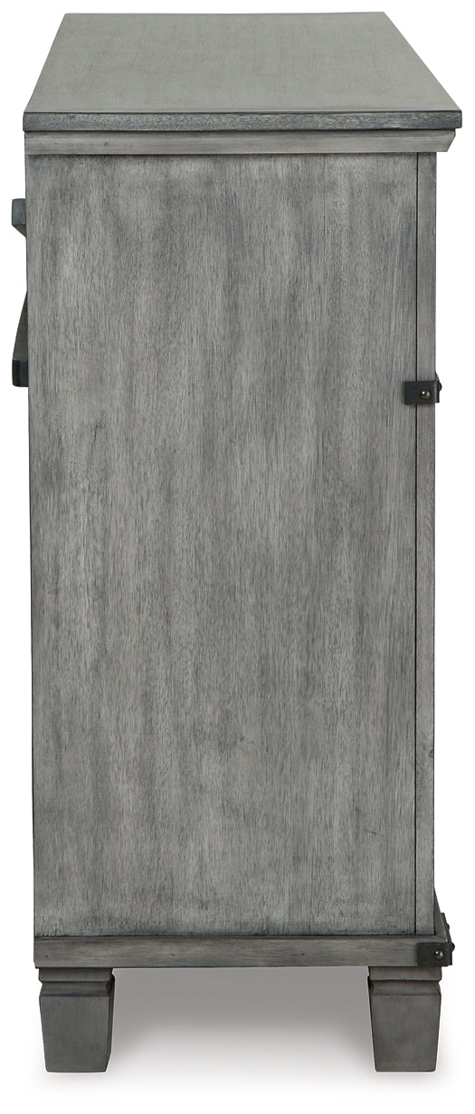 Details | Made with acacia wood, acacia veneer and engineered wood, Light weathered gray finish, Metal accents and straps with aged bronze-tone finish, 7 smooth-gliding drawers with dovetail construction | |