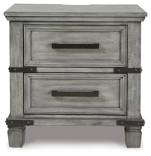 Details | Made with acacia wood, acacia veneer and engineered wood, Light weathered gray finish, Metal accents and straps with aged bronze-tone finish, 2 smooth-gliding drawers with dovetail construction, 1 electrical outlet; 2 USB charging ports, Power cord included; UL Listed | |
