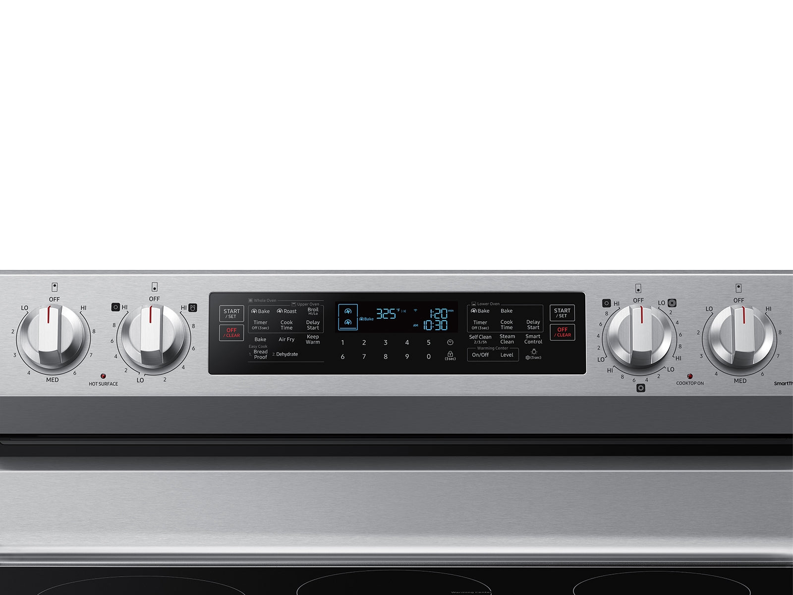 SAMSUNG 30 Inch Freestanding Electric Range with 5 Heating Elements 6.3 Cu. Ft. Flex Duo Convection Oven No Preheat Air Fry Self-Clean with Steam Storage Drawer Voice-Enabled Wi-Fi and Star-K Certified Fingerprint Resistant Color: Stainless Steel.