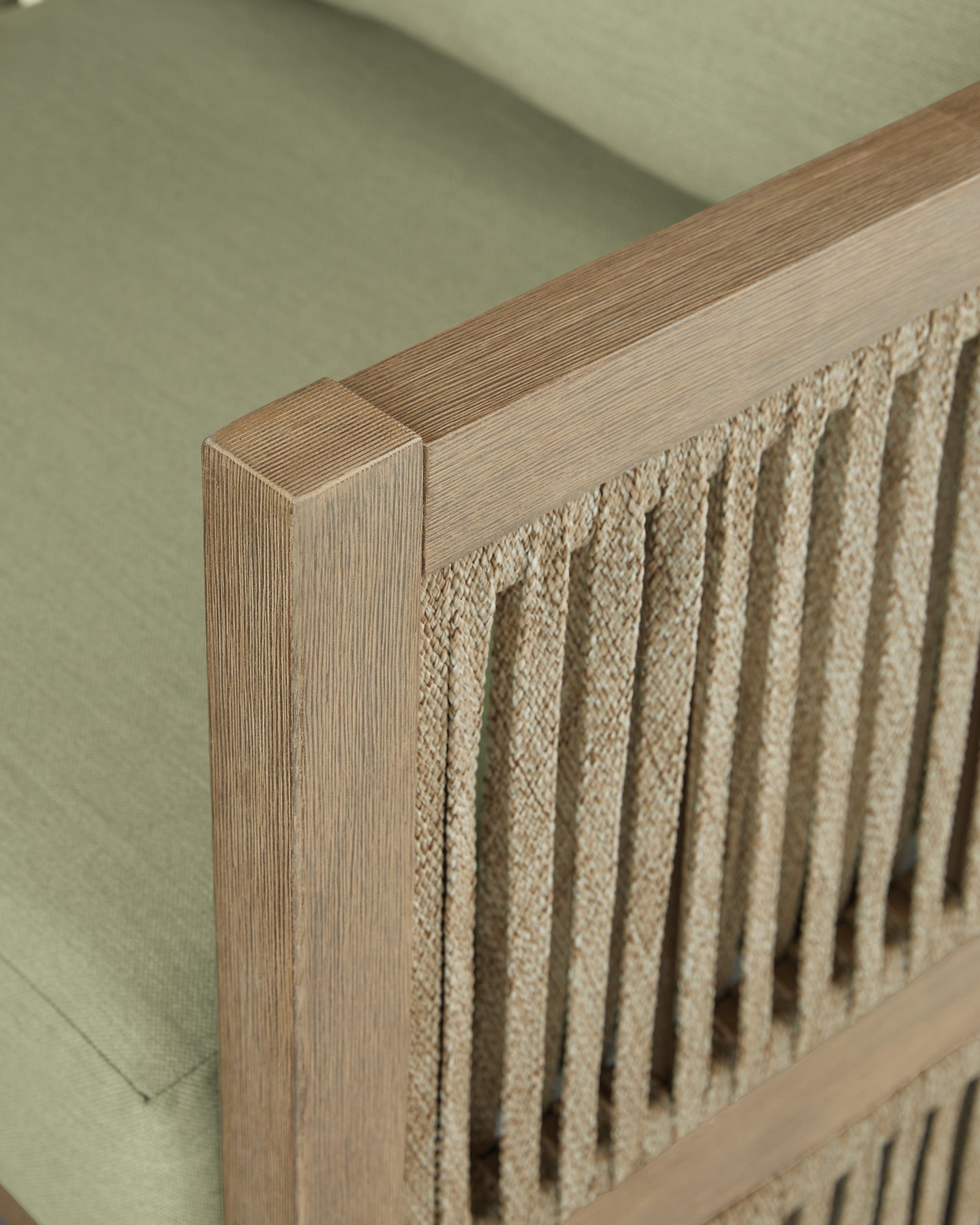Details | Made with eucalyptus wood and polyester rope, 5-step protective coating process, All-weather foam cushion core wrapped in soft polyester, Solution-dyed high-performance fabric, Nuvella is an outdoor fabric that can be cleaned and offers UV resistance, Clean fabric with mild soap and water, let air dry; for stubborn stains, use a solution of 4 oz. bleach to 28 oz. water, Stainless steel hardware, Designed to withstand the harsh elements of the outdoors, Assembly required | |