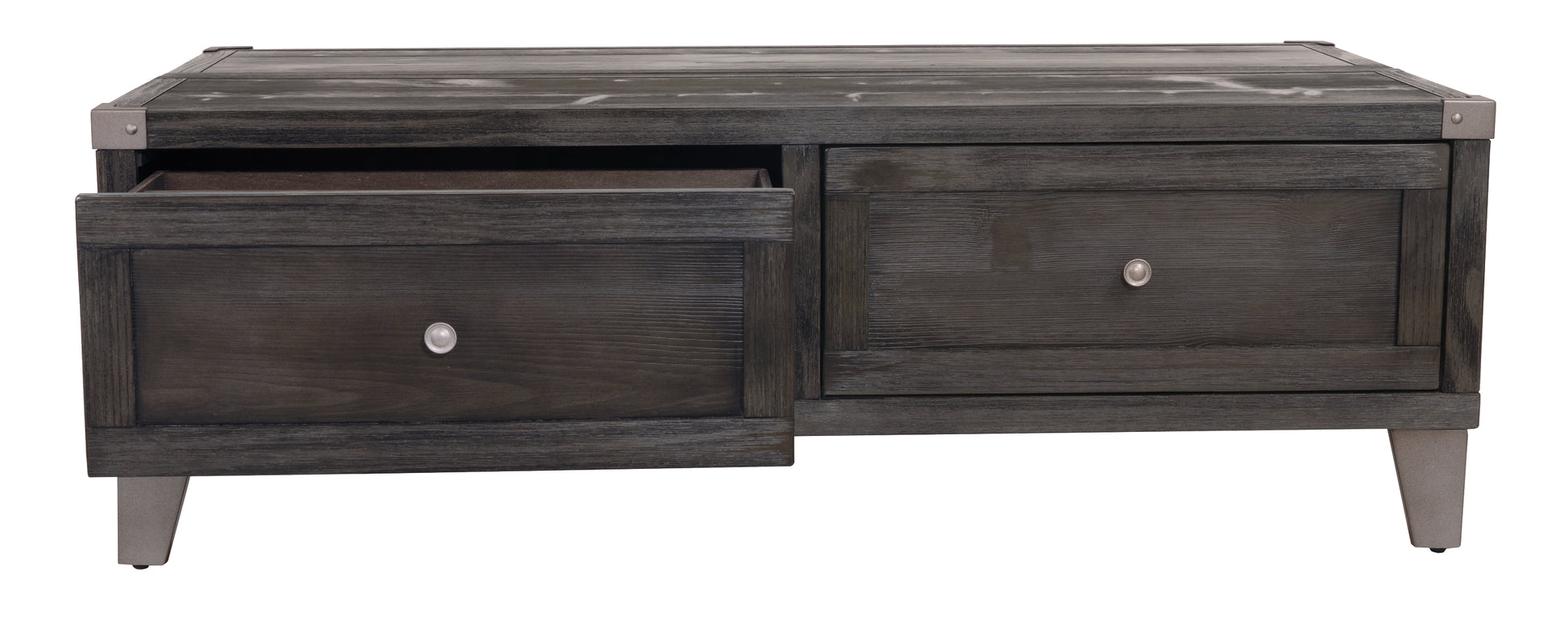 Details | Made of veneers, wood and engineered wood, Weathered pine finish, Metal legs, bracket accents and hardware, Spring-lift top, 2 smooth-gliding drawers, each with a removable tray, Minor assembly required | |