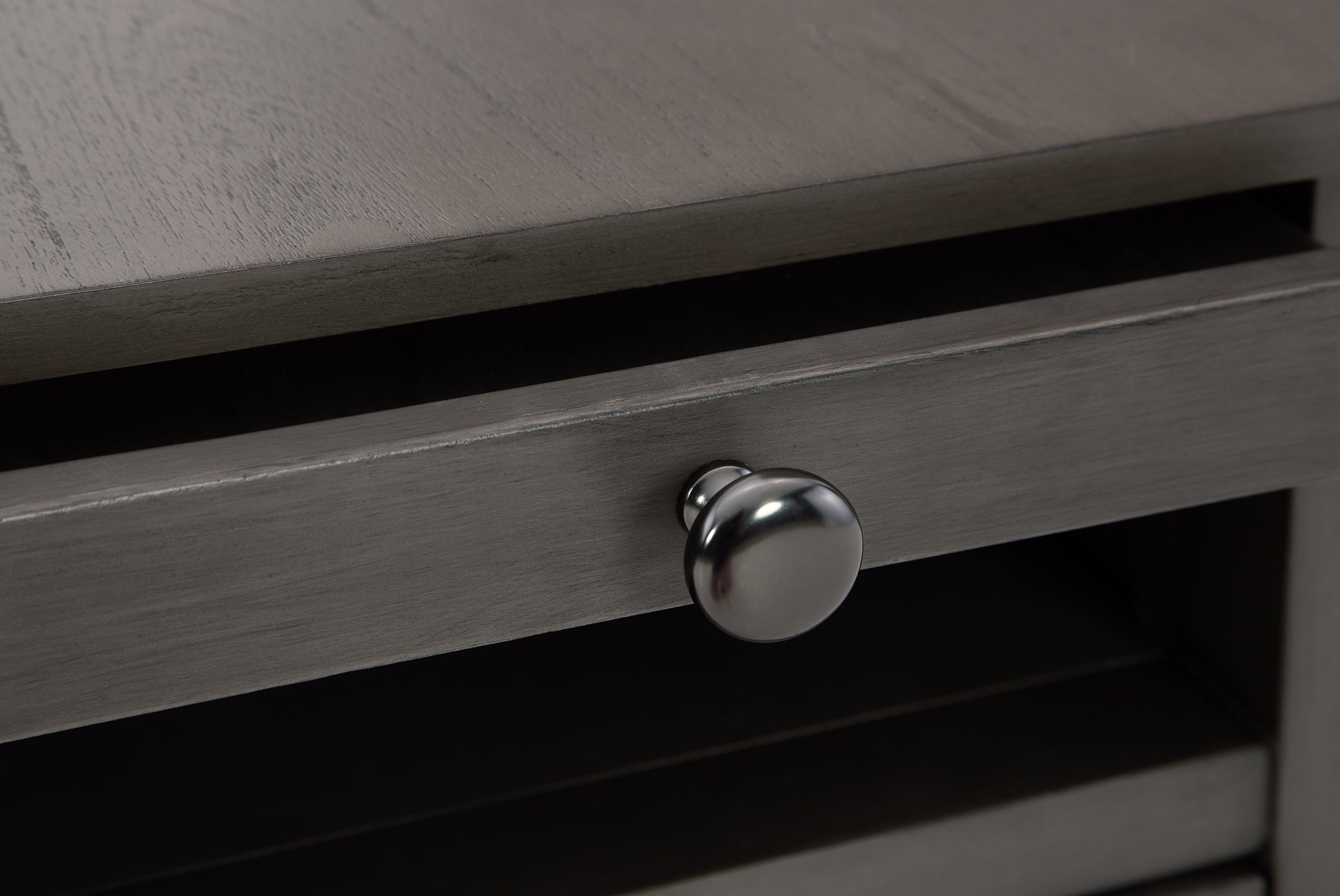 Details | Made with solid wood, wood veneer and MDF substrate, Gray wood tone finish, Table features storage cabinet, open cubby shelf and pull-out tray, 110V power supply with dual USB charging ports, Power cord included; UL Listed, Due to the use of natural materials, some variations may occur, Assembly required | |