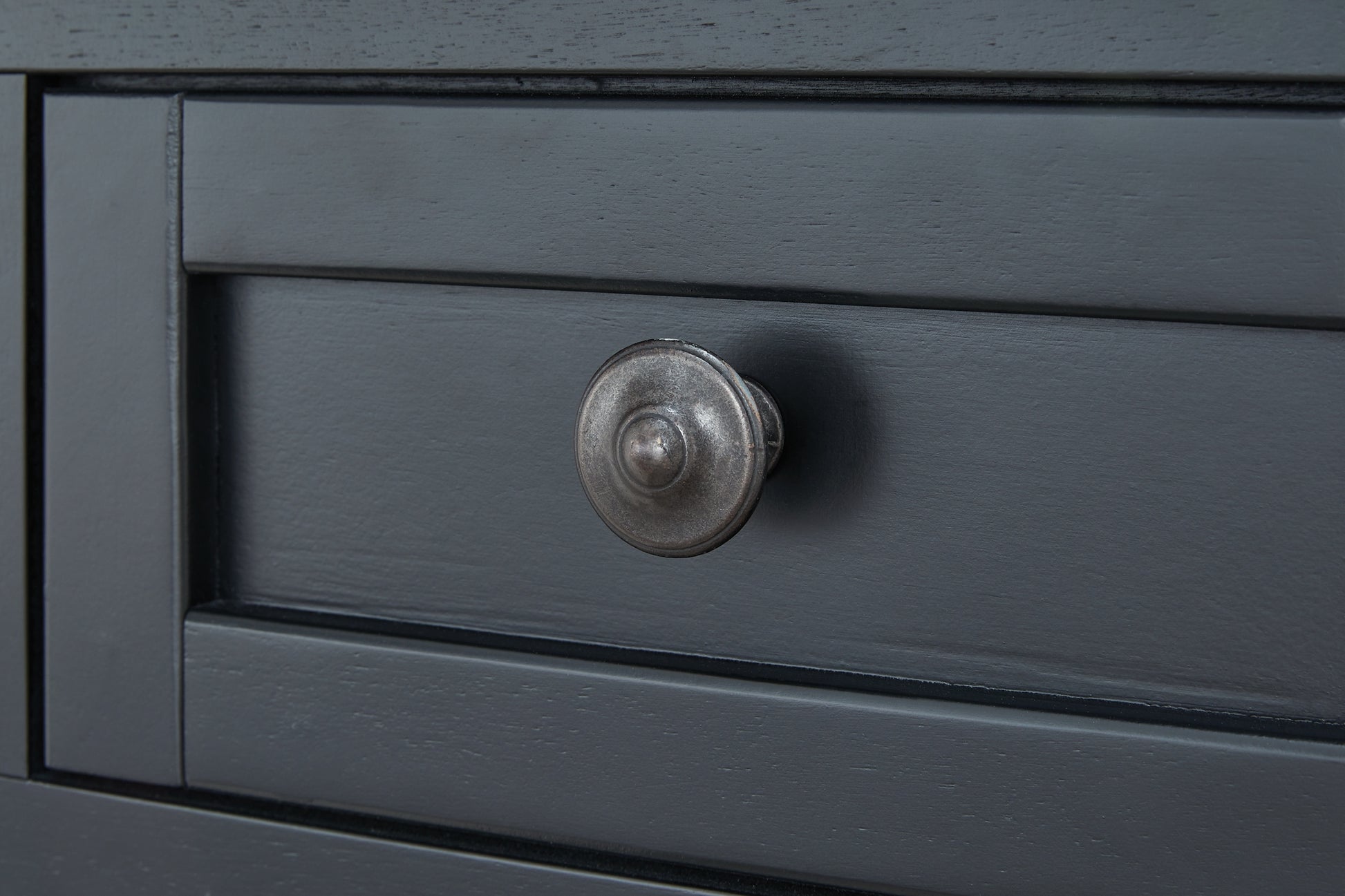 Details | Made with hardwood solids, mango wood veneer and MDF substrates, Top with butcher block veneer pattern in rich brown wood tone finish, Base with warm satin black finish, Hardware with dark pewter-tone finish, 3 smooth-gliding drawers with fully finished interiors, dovetail construction and heavy-duty ball-bearing side glides, USB-A and USB-C charging ports, Power cord included; UL Listed, Assembly required | |